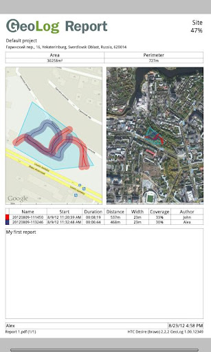 3. Creating PDF-report, which contains two maps with selected tracks and sites, coverage data, and the author's name.